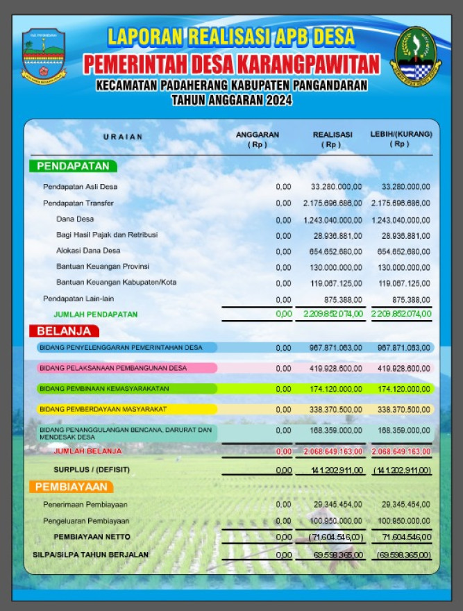 Infografis Laporan Pertanggungjawaban Ralisasi Pelaksanaan APBDes Tahun Anggaran 2024