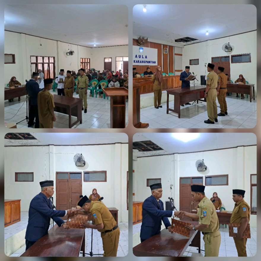 Setelah itu, acara utama yaitu Pelantikan dan Pengambilan Sumpah/Janji dilakukan langsung oleh Kepala Desa Karangpawitan, Bapak Saryono, kepada perangkat desa yang dilantik. Proses pelantikan ini disaksikan oleh Camat Padaherang, Tim Fasilitasi Kecamatan, BPD, Bhabinkamtibmas, tokoh masyarakat, serta unsur pemerintahan desa dan tamu undangan lainnya.
